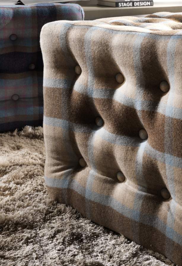 Quilted upholstery with buttons from our pouf Bourby