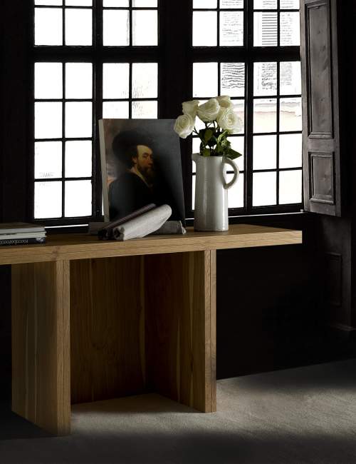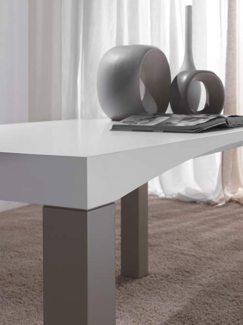 Fixed circular table with metal base, top with shaped edge. Available in four basic colors of our collection: white RAL 9010, bronze, manganese, natural transparent or lacquered in all colors, also on request